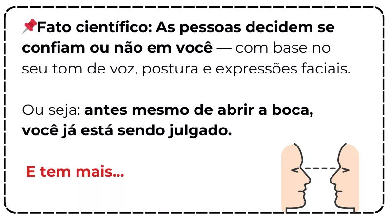 Domine sua voz, postura e expressões para transmitir autoridade instantânea: Elimine os gestos nervosos, tom de voz vacilante e posturas submissas que fazem os outros te interromperem ou ignorarem suas ideias em reuniões e conversas importantes.
